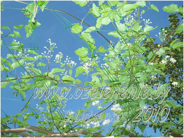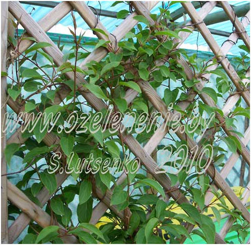Клематис. Одно из самых красивых вьющихся растений. Немногие лианы могут сравниться с клематисами яркостью цветов и разнообразием окраски. Огромные, до 20 см. в диаметре, цветки, раскрывающиеся на тонких, ажурных ветвях – это гибридные клематисы. Наверняка, они известны всем. Вырастают такие лианы до трёх метров; а цветут, в зависимости от сорта, весной, летом или в начале осени. Всё более популярными становятся и мелкоцветковые (ботанические) клематисы: горный, даурский, тангутский и другие. Они гораздо мощнее крупноцветковых гибридов – за год плети взрослого клематиса вырастают до 8-10 метров. А небольшие по размеру цветки компенсирует их оригинальная (К. тангутский) форма, аромат (К. горный), продолжительный период цветения (К. даурский), и конечно, обилие цветов. Клематис привередлив: стебли его должны прогреваться солнцем, а корни – оставаться в тени. Почва должна быть обязательно плодородной! Даже для самого маленького саженца нужно готовить большую посадочную яму и заправлять её питательным грунтом, перепревшим компостом. Что касается ежегодной обрезки сортового клематиса, - то здесь многое зависит от вида. Надёжнее всего – соблюдать рекомендации производителя, указанные на этикетке: некоторые клематисы можно обрезать лишь слегка, другие – почти под корень; весеннецветущие – сразу после цветения, остальные – ранней весной. Ботанические виды – самые неприхотливые. Мне нравится даурский клематис. Цветёт с июля до поздней осени. Рамер цветка - 3-4 см. Годовой прирост - 6-8 м.