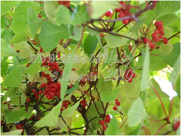 Горец (фаллопия). Эта лиана растёт на любой садовой почве, на солнце и в полутени. Не выносит ветра и сквозняков. Растёт быстрее многих других лиан, поэтому очень популярен. Годовой прирост составляет от 5 м., высота растения – 12 м. Хорошо переносит сильную обрезку. Цветёт летом и в начале осени – белая пена соцветий появляется в верхней части растения. Нет фото. Честно скажу - совсем не впечатлило меня это растение! Лимонник китайский. У себя на родине, на Дальнем Востоке, он растёт исключительно с восточной стороны холма. Поэтому лимонник нужно высаживать так, чтобы с запада его защищал «холм» - дом, сарай, забор, или, хотя бы, пергола. И ещё – обязательно дайте ему опору, по которой лимонник будет виться! Эта опора должна быть выше двух с половиной метров, потому что ягоды у этого растения образуются только на ветвях, достигших двухметровой высоты. Ниже формируются только мужские цветки. Все части этого растения съедобны и целебны: терпкие кислые ягоды обладают сильным тонизирующим эффектом. А из листьев, цветов и веточек получается вкусный, бодрящий чай. Особенность: Лимонник китайский вырастет ТАКОГО РАЗМЕРА, КАКОГО РАЗМЕРА ОПОРУ ВЫ ЕМУ ПРЕДОСТАВИТЕ (полтора метра или десять - решать вам!). Этому растению опора нужна С САМОГО МОМЕНТА ПОСАДКИ. Причем, СОРАЗМЕРНАЯ: маленький саженец не воспримет как опору толстый столб или бревно - протяните ему бечёвку к этому столбу, или приставьте для начала тонкую бамбуковую палочку. Лимонник китайский - взрослая лиана.