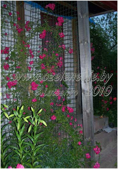 Роза плетистая. Её не спутаешь ни с чем! Наверняка у многих из вас есть красная плетистая роза сорта «Фламментанц» - самая выносливая и неприхотливая, прекрасно цветущая в наших условиях. Хотя недавно в продаже появились другие сорта с цветками жёлтого, оранжевого, белого цвета. А кое-где можно встретить и старинные – мелкие розовые или белые розочки, собранные в соцветия. Старинные плетистые розы очень красивы, но, в отличие от современных сортов – менее устойчивы к болезням и вредителям, поэтому требуют постоянного ухода. Главное, что нужно знать о плетистых розах: они цветут «на побегах прошлого года». Это значит, что молодые плети, выросшие в этом году, зацветут только следующим летом. То есть, они должны перезимовать. А мы, в свою очередь, постараемся их сохранить. Специалисты до сих пор спорят, нужно ли укрывать плетистые розы на зиму. Некоторые рекомендуют снимать плети, пригибать их к земле, и накрывать лапником. Но что делать, если у взрослого куста побеги достигают 3-4 см. в толщину и 3 м. в высоту? На мой взгляд, наиболее оптимально было бы высаживать плетистые розы в теплом, защищенном месте, с южной стороны, у стены или живой изгороди. А укрывать на зиму – только молодые кустики до 2-3-х лет. И помните, что роза поворачивает свои цветы к солнцу, значит расположить её на участке нужно так, чтобы потом самим можно было любоваться сказочным цветением. Роза "Фламментанц" (танец огня) - самая распространённая, самая неприхотливая и самая красивая!