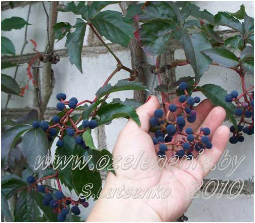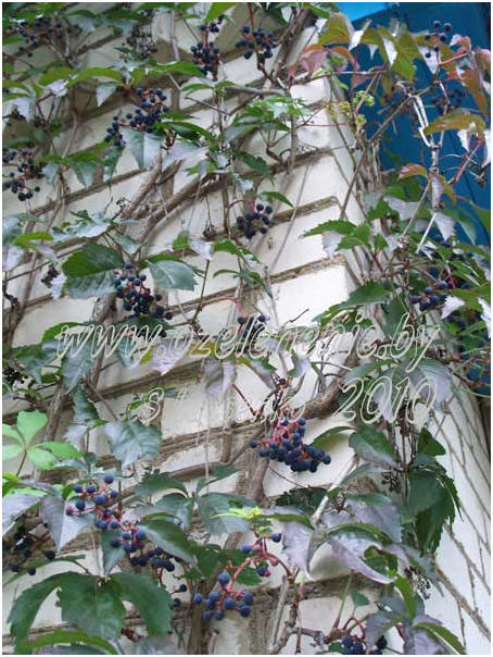 Виноград съедобный. Существует много сортов винограда, акклиматизированных в Беларуси. Среди них есть даже такие, которые не нуждаются в зимнем укрытии. Подробную консультацию можно получить у специалистов, занимающихся его разведением. Если виноград вы выращиваете ради ягод – лиану нужно систематически и достаточно сильно обрезать. Высаженный в качестве декоративного растения – виноград украсит ваш сад крупными красивыми листьями и гроздьями разноцветных плодов осенью. Следует помнить, что съедобный виноград выносит холод, но любит тепло. И листья осенью сбрасывает одним из первых.