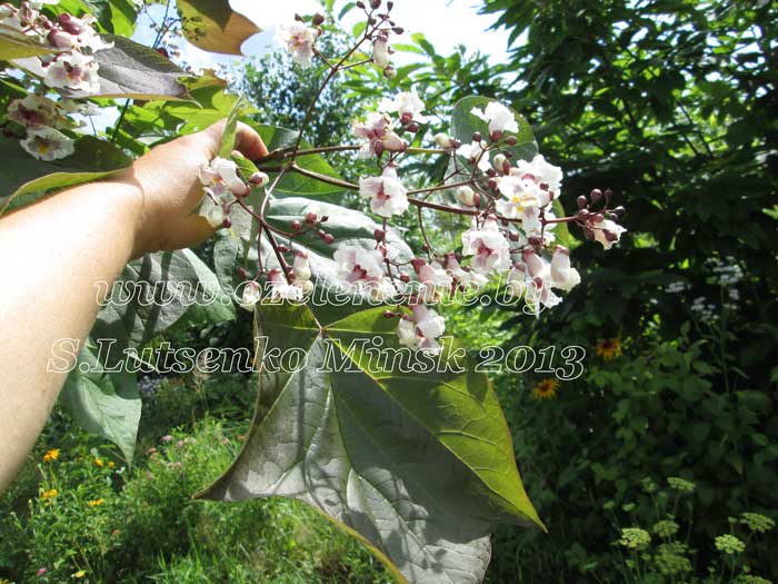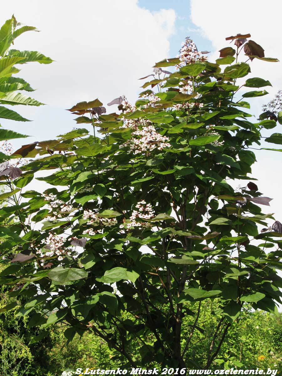 Каталог деревьев и кустарников для Минска и Беларуси (А-Я)Катальпа (catalpa)Этой южанке наш белорусский климат пришёлся по вкусу. И не только белорусский. Катальпу уже давно используют даже для озеленения городов в средней полосе России. А мы почему-то ещё не так активно применяем это заметное, сильное и выносливое дерево. В нашей стране я встречала катальпу в Брестской области, но она отлично может расти и в более холодных областях. Молодая катальпа похожа на гигантский куст сирени с огромными листьями. Размер листовой пластины достигает у взрослой катальпы 40х40 см. и более. Катальпа на удивление некапризна, и удовлетворится обычным, ненавязчивым уходом за ней. А ещё катальпу называют "индийским бобовым деревом". Всю зиму её украшают длинные (30-40 см.) тонкие, собранные в грозди "стручки" с семенами. Выглядит это очень необычно.