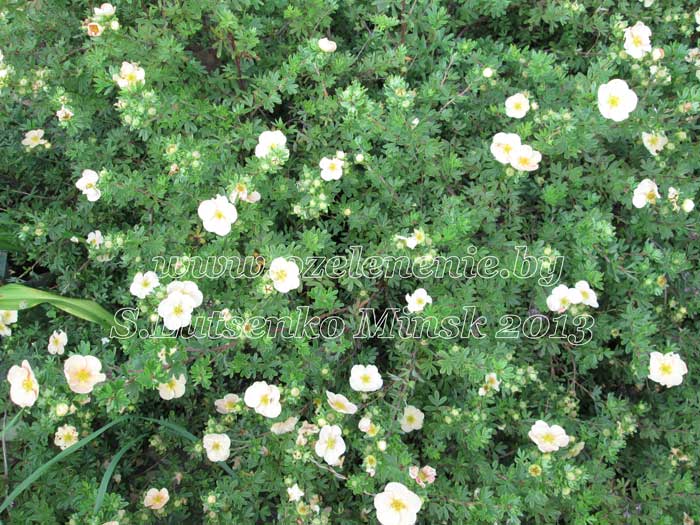 Каталог деревьев и кустарников для Минска и Беларуси (А-Я)Лапчатка кустарниковая, пятилистник, пятилисточник, курильский чай (potentilla floribunda, pentaphylloides floribunda)Сортов пятилистника (так по-новому называют ботаники привычную нам лапчатку/курильский чай) гораздо больше, чем снимков в этой коллекции. И все они хороши, в первую очередь тем, что цветут всё лето! Да, период цветения этого кустарника продолжается 5-6 месяцев. Это значит, что лапчатка вполне способна заменить собой или дополнить летнюю клумбу. Особенно, если различные сорта аккуратно подобрать по росту и цвету. Лапчатка предпочитает солнечное место. К почвам нетребовательна. Но ей нужно достаточное количество влаги, и если вы посадили курильский чай на песчаной земле - обеспечьте полив (в засушливую пору года - ежедневный). Лапчатка нигде не накапливает влагу, а тонкие корни в прогретом верхнем слое земли стремительно пересыхают. Повреждённое засухой растение обычно восстанавливается, но декоративность может потерять надолго. Поэтому, почва с высоким содержанием глины, положенная в посадочную яму, исправит ситуацию.