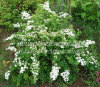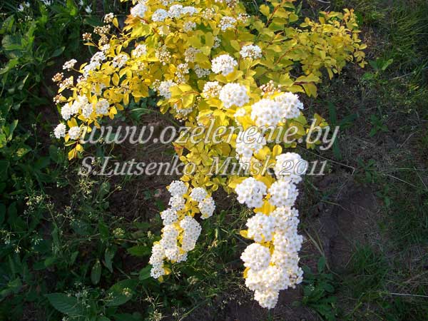 Спирея вангута (spiraea vanhouttei)Спирея Ван-Гутта. Народное название этого нарядного куста - "невеста". Зацветает спирея вангута во второй половине мая, заканчивает цветение в июне. Высота кустарника 2,2 метра. Сорт "Золотой фонтан" отличается лимонно-жёлтой листвой. Как и все желтолистные растения в нашем климате, чуть больше требователен к условиям выращивания. Нуждается в защищённом месте и своевременном поливе.
