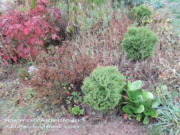 Туя западная "Глобоза", "Голден глоуб" (thuja occidentalis 'Globosa', 'Golden globe')Шаровидные туи 'Globosa' (зелёная) и 'Golden globe' (золотой шар) это кустарниковые формы туи. Эти сорта - достаточно крупные, мне доводилось видеть Глобозу диаметром более 3-х метров (за ней хорошо ухаживают), хотя в литературе её предельный размер определён, как 2,5 м. Золотистая, как и всё жёлтое в нашем климате, будет немного поменьше. Шаровидную форму эти туи сохраняют сами; специальной обрезки не требуется. Однако, если вы хотите, чтобы шары стали более густым и плтными - можете их иногда постричь. В моих шаровидных туях, диаметр которых уже превысил 1 м., с удовольствием гнездятся мелкие птицы.