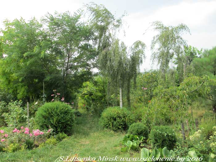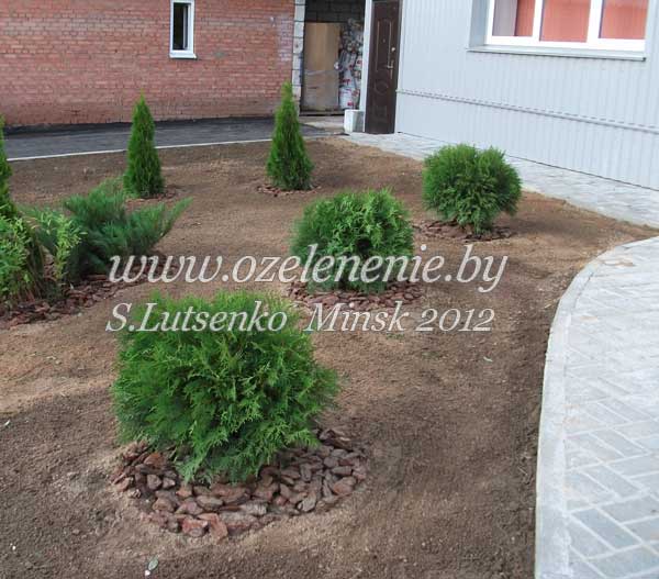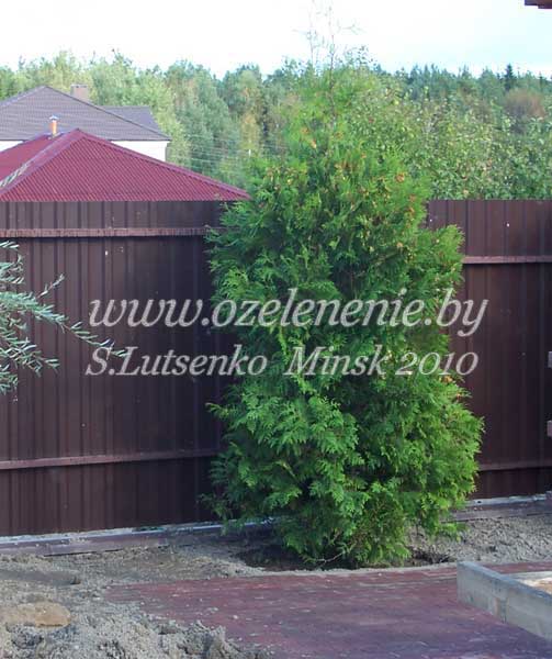 Каталог деревьев и кустарников для Минска и Беларуси (А-Я)Туя (thuja)Наше видео: https://www.youtube.com/watch?v=WFhU0_VVLIQ Живая изгородь из туи, потребности вида, особенности некоторых сортов туи. Несмотря на то, что туи никогда раньше не росли в нашей природе, эти гости прочно обосновались в наших садах. И чувствуют себя в белорусском климате великолепно. Им здесь понравилось. Нам они тоже нравятся: неприхотливые, быстро растущие, с мягкой, неколючей хвоей. Тую легко можно подобрать для любого участка и любой ландшафтной композиции. Их формы и окраска разнообразны. Они легко переносят стрижку. Красиво смотрятся как в одиночных посадках, так и в группе. 99,9% саженцев туи, которые мы высаживаем в своих садах, относятся к виду "туи западной". Только сорта - разные: они отличаются формой, размером, окраской хвои. И эти различия довольно существенны. В некоторых питомниках вы можете встретить растение "туя западная" без указания сорта. Это значит, что растения туи здесь выращены из семян. Поскольку туя опыляется ветром, мы можем с уверенностью сказать, что из семян вырастет "туя западная" (т.к. они все у нас - западные). А вот на кого из "родителей" будет похоже молодое растение - предположить сложно. Если вы покупаете совсем маленькие саженцы туи, имейте в виду - до их 3-х летнего возраста определить сорт не во��ьмутся даже специалисты. Если вы доверяете продавцу, и при этом он размножал тую вегетативным способом (не семенным), вы получите тот сорт, который планировали. Во всех остальных случаях сюрприз гарантирован. Если же вам всё же нужна туя недорогая (из семян - гораздо дешевле), тогда приобретайте саженцы уже немного подросшие. Такие, у которых можно хотя бы определить форму (вериткальная, узкая или широкая, либо шар, крупный и мелкий). А лучше всего покупать тую в том питомнике, который сразу указывает не только вид, но и название сорта. Ещё на одну важную вещь хочу обратить ваше внимание. Туя имеет поверхностную корневую систему (корни не уходят глубоко в землю). Значит: 1) в засушливые периоды туя нуждается в поливе; 2) тую легко можно пересаживать, даже большую; 3) туя никогда не повредит коммуникации, которые зарыты в землю на глубину более 70 см. Туя западная "Брабант" (thuja occidentalis 'Brabant')Туя западная сорта 'Brabant' - самая крупная и быстрорастущая. За 10-12 лет из саженца она превращается в высокое и широкое вечнозелёное дерево. Этот сорт пригодится там, где нужно быстро вырастить стену, защищающую участок и дом от ветра или дорожной пыли. И ещё. Туя "Брабант" - лучший сорт для стрижки, в том числе для создания живых изгородей. Если эту тую постоянно стричь, её ствол не оголится. А способность Брабанта быстро отрастать сделает вашу живую изгородь густой и плотной за короткий промежуток времени. Туя западная "Смарагд" (thuja occidentalis 'Smaragd')Туя западная сорта 'Smaragd' (Смарагд - по-старославянски: "изумруд") - самая стройная и аккуратная. Диаметр кроны взрослого растения редко превышает 1,2 м. Я осторожно отношусь к применению этого сорта туи в дизайне, и рекомендую её высаживать далеко не везде. Но большинство моих заказчиков её так любят! Что ж, это действительно красивое растение. И простое в уходе. Как отличить "настоящий" Смарагд от других сортов туи? В том числе, от туи, выращенной из семян Смарагда? Обратите внимание на верхушки. У сортовой туи 'Smaragd' они "тупые", то есть туя заканчивается не о