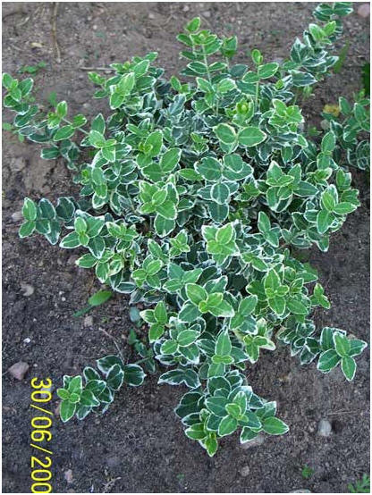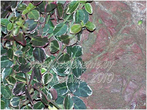 Многолетние цветы - такие, как: флокс шиловидный, обриета, барвинок, различные камнеломки, молодила или, например, примулы - могут отчасти решить проблему. К тому же, они красиво цветут. Но два существенных обстоятельства могут помешать вам использовать многолетние цветы для заполнения пространства между более крупными растениями. Во-первых – тень от этих «великанов» пойдёт на пользу далеко не всем цветам. Красивоцветущие многолетники или растения с разноцветными (пёстрыми, окаймлёнными) листьями обычно предпочитают солнечное место. Во-вторых – многолетние цветы активно разрастаются, так что раз в три-четыре года их просто необходимо выкапывать и делить. Если этого не делать, то чересчур загустевшие растения потеряют вид, измельчают и в конце-концов уничтожат сами себя. Эта «лишняя» работа не представляет сложности для увлечённых ботаников и коллекционеров. Но для людей занятых, или не имеющих особого опыта в растениеводстве может оказаться той самой «последней каплей», когда захочется махнуть рукой на порядок, дизайн, красоту… А вот этого делать категорически нельзя!!! Поэтому – выбираем кустарники! Не цветы, а многолетние декоративные кустарники: надёжные, долговечные, неприхотливые. Сказать, что таких растений много – значит не сказать ничего. Их очень много, разных, и главное для вас – правильно определить, какие именно качества растения в каждом конкретном случае наиболее важны: высота, форма, цвет и фактура листвы, теневыносливость или способность расти на солнечных участках и каменистой почве… Должно ли растение быть вечнозелёным, хвойным или лиственным, ярко цвести или приносить плоды? Чтобы представить вам описания всех возможных вариантов, мне пришлось бы составить толстую книгу. Займусь этим позже, а пока приведу примеры растений, наиболее распространённых, доступных по цене и при этом красивых; не требующих к себе сверхъестественного внимания (поливать, подкармливать и срезать ненужные ветки всё равно придётся, се ля ви). Хотите маленькое ползучее растение с разноцветными листочками? Бересклет Фóрчуна – как раз подойдёт (euonymus fortunei).