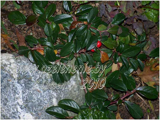 Кизильник стелящийся редко поднимается над землёй выше, чем на 10-15 см., но его длинные, многометровые побеги способны укрепить любой склон. Если кончики побегов не подрезать, то кизильник стелящийся через пару лет окажется двумя-тремя тонкими и длинными ветками, уползающими куда-то вдаль. Чтобы такого не случилось, периодически отщипывайте у молодых веточек верхнюю почку. Тогда «просыпаются» боковые побеги, и крона становится более густой. Как только боковые побеги немного вырастут, удалите верхние почки у них, и куст снова станет ветвиться. Кстати, тёмные глянцевые листья кизильника стелящегося осенью не опадают. Полностью или частично они опадают весной, перед тем, как начинает открываться новая листва. За это качество кизильник стелящийся (так же, как кизильник горизонтальный и некоторые другие кустарники) называют «полувечнозелёным», или «зимнезелёным». Так оно и есть – кизильник радует нас листвой, пока его не заметёт снегом. А яркие красные ягоды держатся на ветках иногда вплоть до следующего «урожая». Кизильник стелящийся может расти практически на любых почвах на солнце и в полутени.