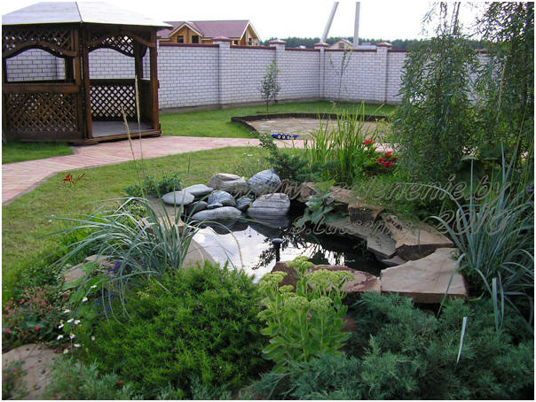Осталось задекорировать его берега красивыми камнями, выложить из плоских камней водопад, установить водяную помпу, привезти плодородный грунт и высадить растения. Работы ещё много. Однако, приоткрою вам секрет: готовый пруд будет выглядеть вот так (см. фото 7).