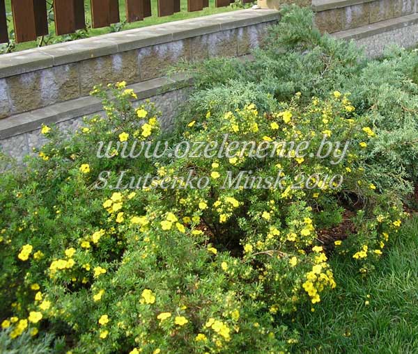 Каталог деревьев и кустарников для Минска и Беларуси (А-Я)Лапчатка кустарниковая, пятилистник, пятилисточник, курильский чай (potentilla floribunda, pentaphylloides floribunda)Сортов пятилистника (так по-новому называют ботаники привычную нам лапчатку/курильский чай) гораздо больше, чем снимков в этой коллекции. И все они хороши, в первую очередь тем, что цветут всё лето! Да, период цветения этого кустарника продолжается 5-6 месяцев. Это значит, что лапчатка вполне способна заменить собой или дополнить летнюю клумбу. Особенно, если различные сорта аккуратно подобрать по росту и цвету. Лапчатка предпочитает солнечное место. К почвам нетребовательна. Но ей нужно достаточное количество влаги, и если вы посадили курильский чай на песчаной земле - обеспечьте полив (в засушливую пору года - ежедневный). Лапчатка нигде не накапливает влагу, а тонкие корни в прогретом верхнем слое земли стремительно пересыхают. Повреждённое засухой растение обычно восстанавливается, но декоративность может потерять надолго. Поэтому, почва с высоким содержанием глины, положенная в посадочную яму, исправит ситуацию.