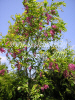 Каталог деревьев и кустарников для Минска и Беларуси (А-Я)Робиния псевдоакация (робиния лжеакация, розовая акация) (robinia pseudoacacia)Декоративное, восхитительно цветущее дерево. В природе встречается в регионах, гораздо более тёплых, чем Беларусь. К нам попадает только в виде растения, привитого на "белую акацию" (также именуемую робинией!, не перепутайте!). И, будучи привитым для повышения морозостойкости - отлично зимует без нашей помощи. Розовая робиния, как и белая, очень быстро прирастает в высоту. С начала вегетации до окончания первого цветения ветви молодого дерева могут удлинниться до 1,5 - 2 метров. Такой быстрый рост приводит к тому, что молодое растение оказывается очень хрупким, и может повредиться ветром. Поэтому, по окончании цветения робинию следует обрезать, ветви укоротить на 3/4. Вы, таким образом, сделаете крону более густой (она продолжит расти), и вызовете второе, а потом и третье цветение за лето. Взрослому дереву обрезка уже не потребуется, но оно порадует вас повторным цветением в любом случае. Единственный недостаток - робинию лжеакацию у нас никто не различает по сортам. Если вы хотите купить дерево только с тёмно-розовыми или светло-розовыми цветами - ищите в магазинах растение хотя бы с одним цветком, чтобы определить, то ли вам нужно. Иногда в продаже можно встретить сорт 'Umbraculifera' - с шаровидной кроной. Этот сорт если и зацветет, то белыми цветами. Робиния абсолютно вынослива, засухоустойчива, и может расти на любых почвах. К тому же - непревзойдённый медонос. Порадуйте свой сад этим прекрасным деревом!