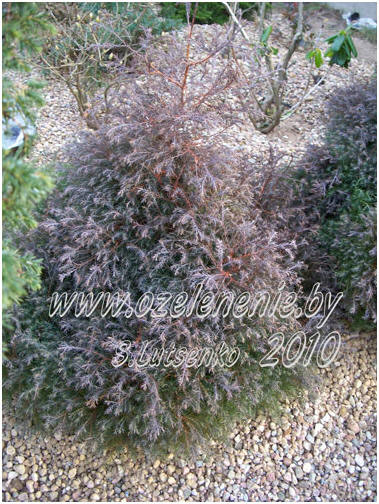 Туя вересковая совсем не похожа на те растения, которые мы перечислили. Её серебристые, колючие чешуйки напоминают, скорее китайский можжевельник. Вересковая туя неплохо растёт в полутени, но, оказавшись на открытом, солнечном месте, приобретает буро–рыжую окраску. Так же она меняет свой цвет к зиме.