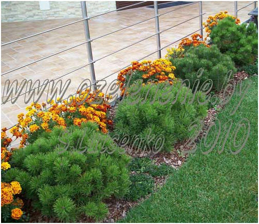 Не зря я так подробно рассказывала сейчас о размерах растений. Обычно этот фактор имеет наибольшее значение при выборе хвойников для вашего участка. На второе место я бы поставила вопрос количества. Не стоит перегружать пейзаж большим количеством вечнозелёных растений, особенно крупных, с тёмной хвоей. Но и недооценивать их значение для дизайна трудно. Поэтому я считаю оптимальным соотношением хвойных и лиственных растений 50% на 50%, примерно так. Причём среди хвойных растений должны присутствовать и высокие (вертикально растущие: колонновидной или пирамидальной формы), и среднерослые (раскидистые), и низкорослые (горизонтальные, стелящиеся: высота некоторых можжевельников, например, не превышает 10 или 25 см.). Если вы считаете всё же, что 50% хвойных растений – это слишком много, - сделайте несколько акцентов. Три – четыре заметные композиции (назовём их «хвойные группы») будут служить украшением в любое время года. Хвойная группа должна включать в себя разновысокие растения с различной формой и фактурой кроны. А если вы проявите фантазию и скомпонуете в группы растения с разноцветной хвоей, то в зимний период такие композиции будут выглядеть привлекательно, и по-своему, ярко! Ещё несколько слов о хвойных группах. Если вы не приверженец жесткой симметрии, то понимаете, что группы, которые вы можете видеть одновременно (если не видно за углом – не считается) должны быть немного разными, но в тоже время – они должны иметь некие объёдиняющие элементы. Возможно, какое-то растение, форма композиции, цвет и всё то, что входит в понятие «стиль». Высаживая хвойные растения группами, то есть – достаточно близко друг к другу, учитывайте, какой размер кроны (по ширине) будет у каждого растения. На сто лет вперёд загадывать не стóит, но позаботиться о том, чтобы в ближайшие 5-10 лет растениям не стало чересчур тесно, необходимо. Теперь, когда мы определились с концепцией озеленения территории, выясним – какие хвойные растения будут расти на нашем участке наилучшим образом. Сейчас обратим внимание на местность, на которой расположен участок, и на особенности почвы. Я не стану перечислять сорта растений – их слишком много. В пределах одного семейства требования у растений схожи. Бывают, конечно, исключения, но они настолько редки, что вы едва ли сможете раздобыть у нас такие растения. Сосна предпочитает открытые, солнечные места и песчаные и супесчаные почвы, плодородие которых особого значения не имеет. Сосна имеет глубокие корни, поэтому ветроустойчива. Следовательно, если озеленяемая территория расположена на природной возвышенности, где жарко, ветрено, а под ногами – сплошной песок, - вы сможете вырастить самые красивые в окрýге сосны. А ель в таких условиях будет расти плохо. Для ели необходимо тенистое или полутенистое место с богатой, плодородной почвой, желательно – суглинистой или супесчаной. А ещё ели не выносят уплотнения почвы (вытаптывания). Если ваша усадьба окружена лесом, и большие деревья (или постройки на участке) дают много тени, то самые разнообразные ёлки – от миниатюрных до гигантских – будут чувствовать себя и выглядеть великолепно. Любимая многими туя западная ( подробнее о туе –ttttttttt) потому и завоевала такие прочные позиции в ландшафтном дизайне, что может расти на любой почве и практически в любых условиях. К тому же, в