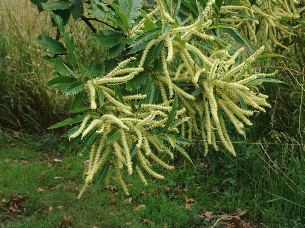 Прекрасно растёт, зимует и цветёт у нас … съедобный каштан. Да-да, вы правильно вспомнили жареные каштаны с тёплого юга! Каштан посевной, или съедобный (Castanea sativa Mill.) – быстрорастущее дерево, зацветает (в нашем климате) уже в 5-6-летнем возрасте, достигнув высоты примерно 2,5 м. Это особенно удивительно, если знать, что двухлетнее растение по размеру – гораздо меньше обычного карандаша! У молодого каштана макушка в первые годы обмерзает. С возрастом морозостойкость существенно повышается, а годовой прирост составляет более метра в высоту. Вы, естественно, захотите узнать: когда же появляются плоды? Цветёт дерево в июне-июле, а каштаны созревают в сентябре-октябре. При одном условии: опылителем каштану должно послужить такое же дерево, но – другого сорта. Кстати, каштан посевной - растение-долгожитель. Он может расти 500 и более лет.