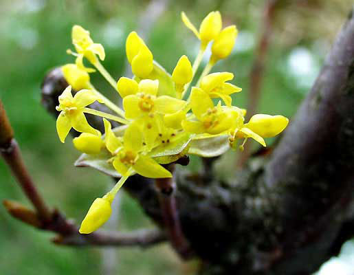 Вы уже посадили на своём участке кизил? Если нет, то поспешите! Никакие другие плоды не содержат столько витаминов и полезных веществ! Кизил, или дёрен мужской (Cornus mas) прекрасно растёт и плодоносит в групповой посадке. Продаётся кизил свободно и в садовых магазинах, и в белорусских питомниках. Цветёт ранней весной – до распускания листьев. А осенью куст украшен множеством крупных красных плодов. Дополнение: растение практически ничем не болеет, приносит стабильный урожай. Плоды по вкусу похожи на вишню, но со своим ароматом. Моё личное впечатление: собрав 3-й урожай с 4-х кустов, посадила себе целый ряд кизилов. Этого растения много не бывает. Дёрен мужской (кизил). Цветы.
