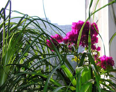 Цветущие кусты бугенвиллеи (bougenvillea) впечатлили меня всерьёз и надолго. Это лучшее из цветущих растений для зимнего сада или оранжереи. Если создать для бугенвиллеи подходящие условия (теплое, солнечное место; зимой t не ниже +18 С), - она не доставит вам никаких хлопот, только удовольствие.