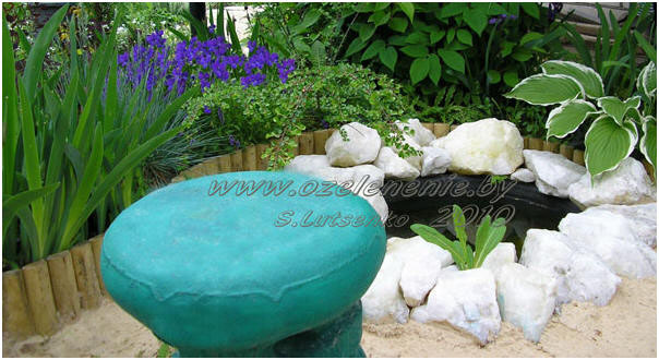 Водоёмы, которые мы создаем на своих участках, я бы условно разделила на четыре типа: 1) миниатюрные водоемы, которые можно сделать, например, из бочки или бадьи. 2) неглубокие декоративные пруды с фонтаном, ручейком или водопадом. 3) «домашние озёра» с рыбой. 4) бассейны для купания. Должна сразу сказать: совместить декоративный водоём с купальней в принципе, можно. Но лучше бы этого не делать. И даже не потому, что дорого (усложняются строительные работы, требуется дополнительное оборудование). А потому, что вода, в которую приятно окунуться, и вода, которая требуется для жизни водных и околоводных растений – это совершенно разные вещи. Бассейн должен оставаться бассейном – без ила, личинок и опавших листьев. Желательно – с системой очистки воды и лёгкой, раздвижной крышей. Мне приходилось видеть достаточно много открытых плавательных бассейнов во дворах частных домов. Все они находились в запустении: ухаживать некогда, органические остатки и насекомые «портят» воду всего за несколько часов, а менять её – процесс достаточно долгий… В общем, чтобы ваш личный бассейн приносил вам радость, строить его нужно по всем правилам. Оставим это инженерам-специалистам, и поговорим о прудах. Самый простой способ обзавестись собственным декоративным водоёмом – это раздобыть подходящую ёмкость и наполнить её водой. Рекомендуемый объём – от 100 литров. Меньшие ёмкости брать нежелательно по той причине, что летом вода из них испаряется слишком быстро. Уедете на денёк, один раз забудете долить воды - и любимое водное растение (ради которого всё и затевалось!) может сильно пострадать. Если емкость, которая у вас есть, - оригинальная и интересная (например, деревянная бочка), - её можно просто поставить на ровную поверхность и заполнить водой. Весной опустите на дно бочки корзину с луковицей водяной лилии. Лилия обязательно вырастет и в середине лета зацветёт. Пластмассовую бочку можно вкопать в землю, а края задекорировать красивыми камнями Такой прудик позволит вам полюбоваться на водную гладь, вырастить одно или парочку небольших водных растений и даже просто иметь под рукой резервуар с тёплой, отстоявшейся водой, на всякий случай. Одно «но»: миниатюрный водоём зимой промерзает насквозь. Воду из него придётся слить до заморозков; а лилию обрезать, поместить в ведро с водой и убрать в подвал. Самое популярное сооружение в наших садах – компактный, соответствующий участку, декоративный пруд небольшой глубины. И если миниатюрный водоёмчик получится, скорее всего, круглым, в крайнем случае – прямоугольным, то здесь форму пруда вы можете придумать любую. Главное, чтобы пруд органично «вписывался» в окружающий ландшафт. Небольшой водоём можно сделать разными способами. Самый незатратный – купить понравившуюся жёсткую форму из ПВХ, подобрав её по величине, и вкопать в землю. Продаются такие формы во всех специализированных садовых и строительных магазинах, стоят – от 100 тысяч до 1,5 миллионов, в зависимости от размеров. Они достаточно устойчивы к ультрафиолету и морозам. Самые долговечные формы – с наиболее гладкой поверхностью, без мелких рельефных деталей. В любом случае, жесткая форма прослужит вам 10 лет, и даже дольше. Основной недостаток - небольшой выбор форм и размеров водоёма, единственный чёрный цвет. Кстати, при установке жёсткой формы восп