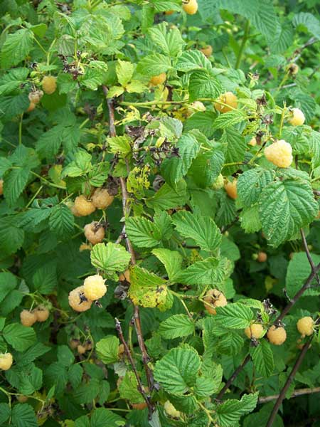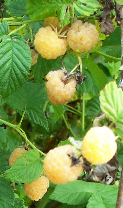 Малина обыкновенная (жёлтая, ремонтантная, "Желтый гигант") (rubus idaeus)Лично я для себя определилась: мне желтая малина нравится больше красной. Во-первых, она существенно слаще. Во-вторых, она лучше растёт в тени, в условиях, где другие растения выживают с трудом. В третьих, она ремонтантная: основной, мощный урожай приносит летом, а затем, до поздней осени потихоньку подкармливает нас свежей, крупной ягодой.